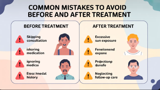 The biggest mistake people make is sun exposure before and after treatments. Even minimal tanning can increase the risk of burns or pigmentation changes. Always use sunscreen and avoid outdoor activities during peak sun hours for at least two weeks before and after each session.